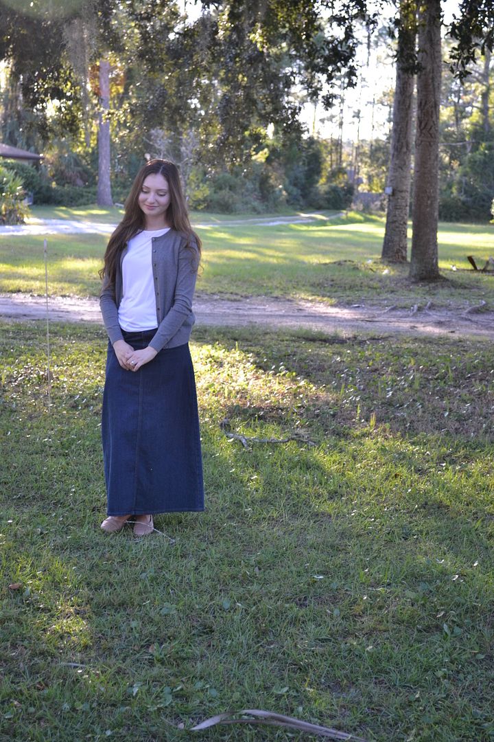 This is an easy, no-fuss, casual outfit I would wear just about anywhere. I wasn't really able to wear long denim skirts in the summer because of the blazing Southern heat, but now that it's finally starting to get cool out, I will be taking full advantage of my long denim skirts! :)
